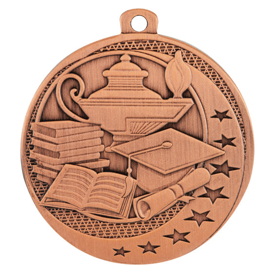 Wayfare Medals offer an affordable range of stylish star-inspired medals for different sports & activities. Academic medal features iconic lamp of knowledge, books and graduation elements.