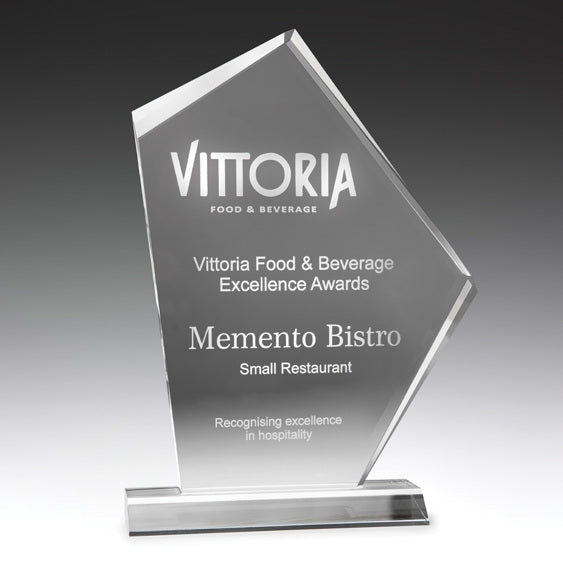 Prestige range of acrylic awards, the Summit Series presents a striking peak inspired design and is available in 3 considerable sizes. Effective as a corporate award to recognise top achievement in your business, organisation and profession. Acrylic will allow for stand-out engraving – plus awards will be supplied in a presentation gift box. Available in 3 sizes A:170mm, B:220mm & C :275mm