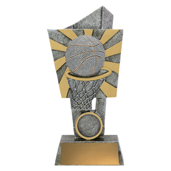 The Basketball Tango offers a bold trophy design in classic antique silver & gold colours. Great value awards with space for your custom or club logo.