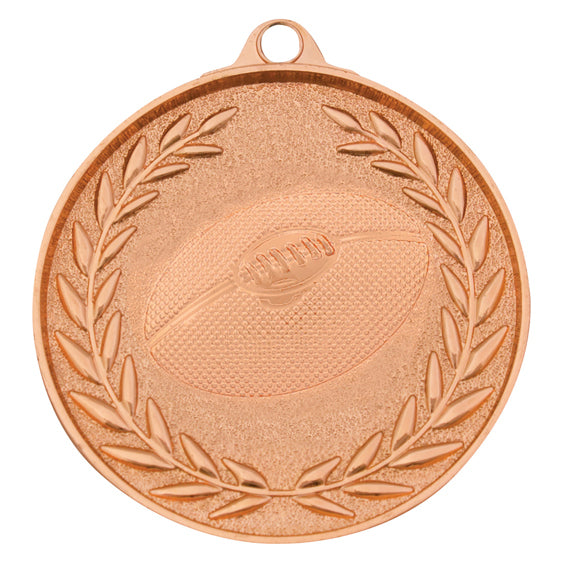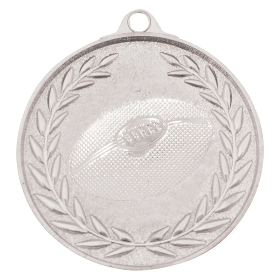Classic & traditional wreath inspired medals for Aussie Rules. A generic theme suitable for all players, medal design features the iconic ball and celebratory wreath representing high achievement.