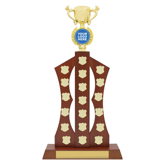 Brilliant perpetual trophy - imposing design with plenty of space for engraving. Choose top or figure for your sport or activity.