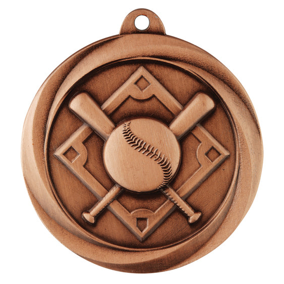 Econo Series of medals are perfect for all budgets and cover wide range of sports and activities. Baseball and Softball medal design features crossed bats, ball and bases theme. Available in gold, silver and bronze - panel for engraving on back of each medal. Ribbons available in all colours.
