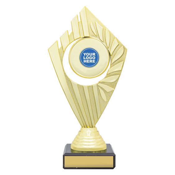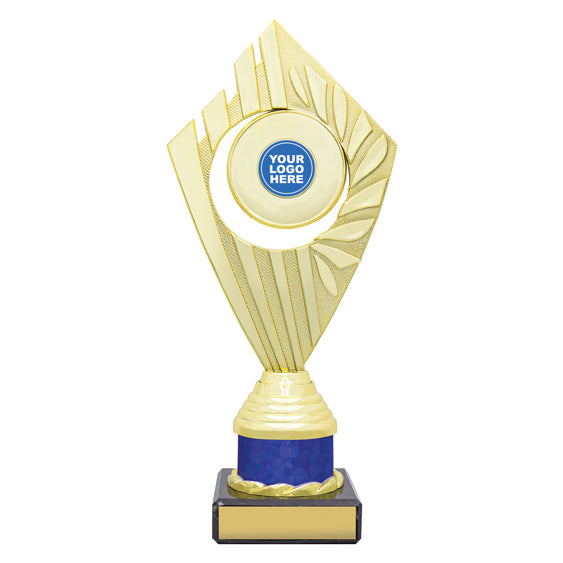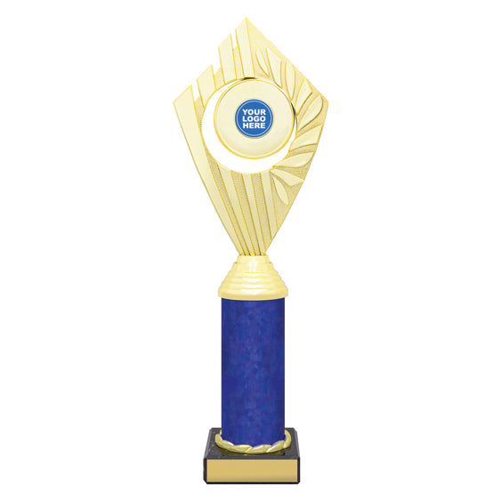 Flyer Series of trophies feature beautifully designed holders on columns of different colours - option to showcase 25 or 50mm logo or insert.