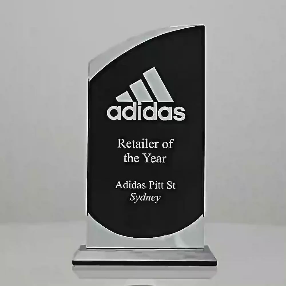 The black patterned Swerve Award Series is a popular choice for a variety of events and presentations. Quality glass award features a unique black panel design to show off your engraving.