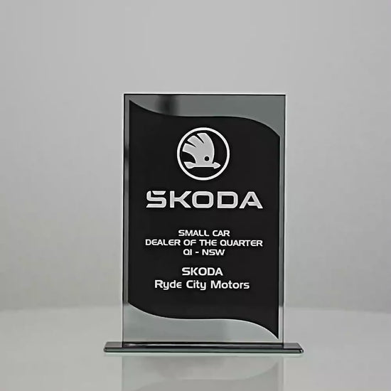 5mm Glass ‘Value Mirror’ Series. The black offset design allows for clear & crisp engraving definition. Silver mirror highlights makes this trophy award stand-out. Available in 3 sizes 165, 185 & 205mm – supplied in gift box.