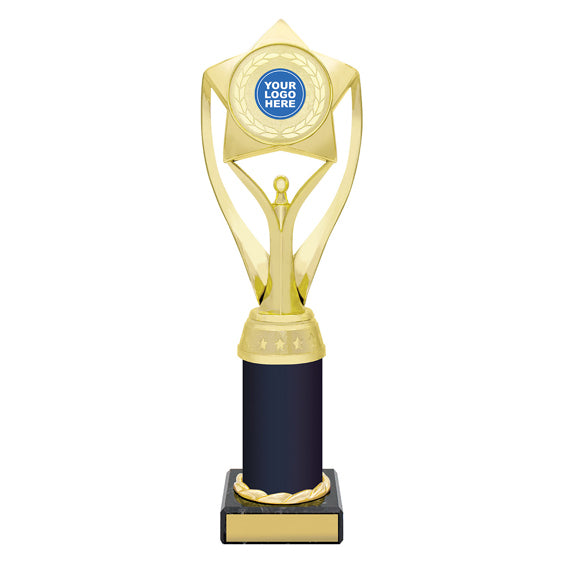 Iconic victory theme, Triumph series of holder style trophies for you to use with either 25 or 50mm inserts. Perfect trophy design for various achievement based awards.