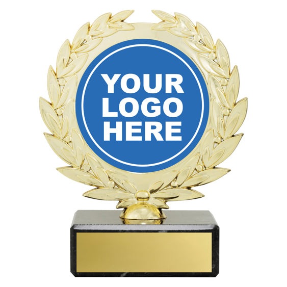 Nice wreath style holders to suit your 25mm or 50mm logos at great value. Available in gold or silver.