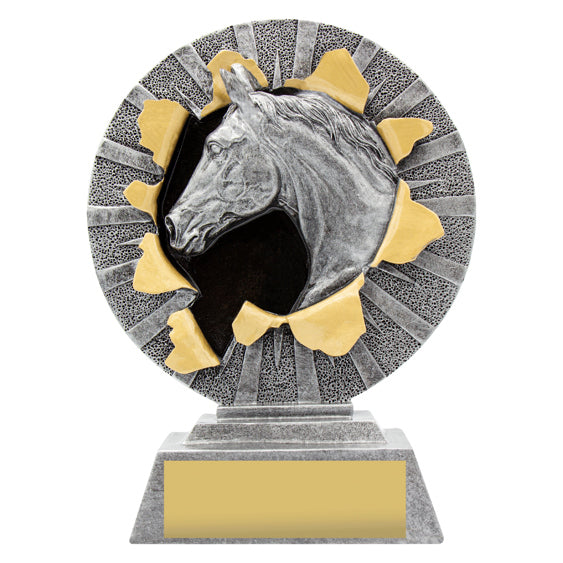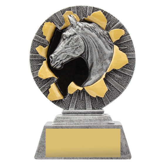 he Xplode Series features a dynamic design that highlights your sport or activity. Horse trophies in 3 sizes present a generic award option well suited to various events and activities. Finished in classic antique silver. A - 130mm, B - 160mm, C - 175mm