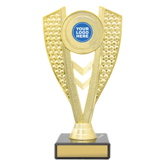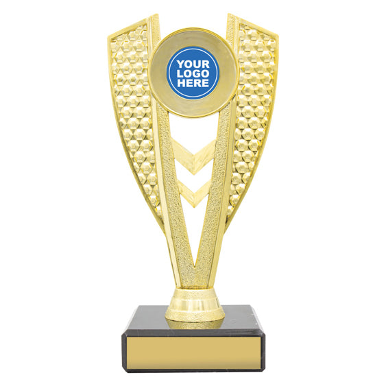 The Modus Holder offers an elegant and affordable design to show off a centre insert - custom logo or theme insert for your sport. Trophies finished off nicely with classic black marble -