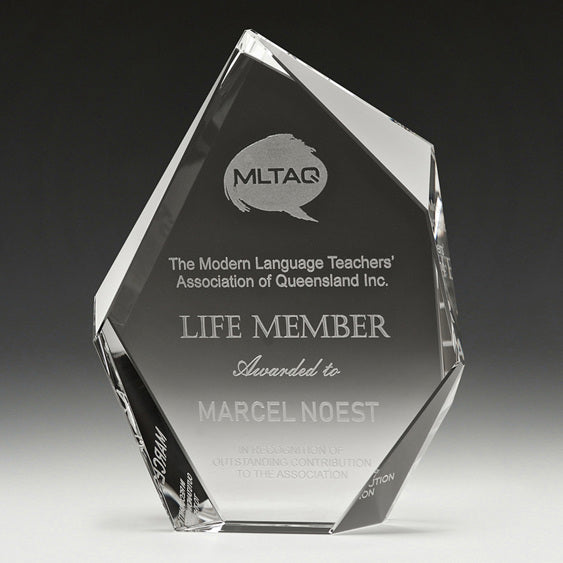 Crystal award series part of the Phoenix Crystal Award Range that offers the best in execution and design for corporate and business style trophies and awards. The Phoenix Crystal Mountain is an iconic design with substantial space for your engraving requirements. Available in gift box. Self Standing Multi Faceted Phoenix Crystal mountain in 4 sizes 150mm, 175mm, 195mm & 230mm